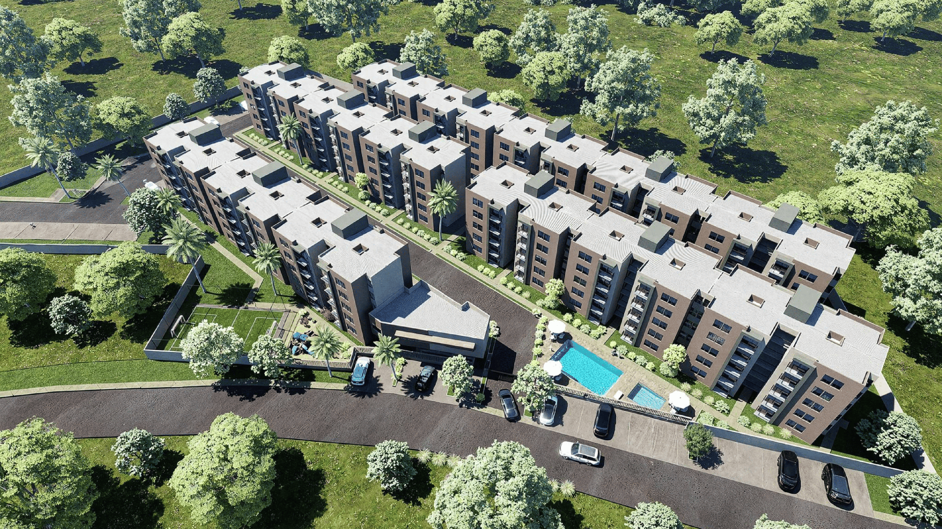 ✅ Apartamentos distribuidos en 5 etapas de 3 bloques por etapa.